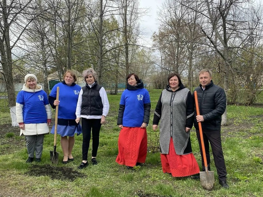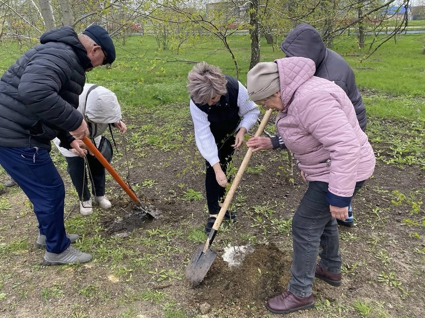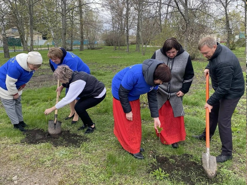 Глава администрации Алейниковской сельской территории Ивахно Татьяна Петровна, староста территории Ткач Татьяна Ивановна вместе с волонтерами культуры, артистами автоклуба и жителями села с большим трепетом участвовали в посадке кустарников.