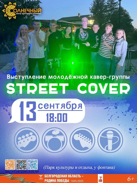 13 сентября в 18:00 состоится концерт молодёжной группы «Street Cover» возле фонтана в Парке культуры и отдыха.
