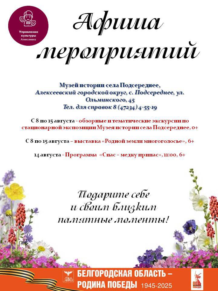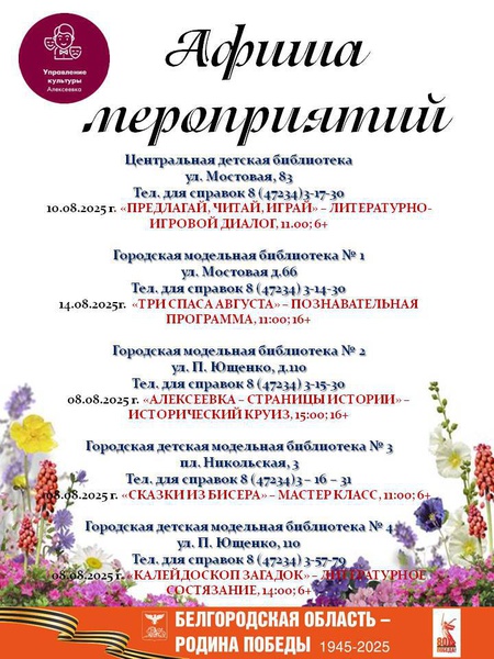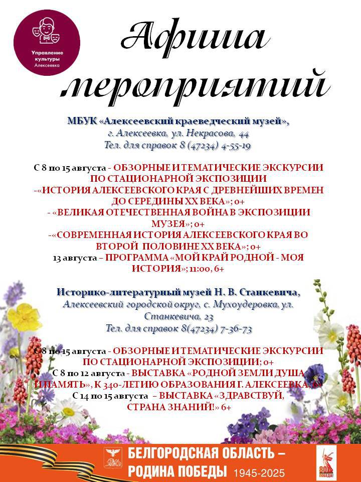 Афиша мероприятий с 8 - 15 августа