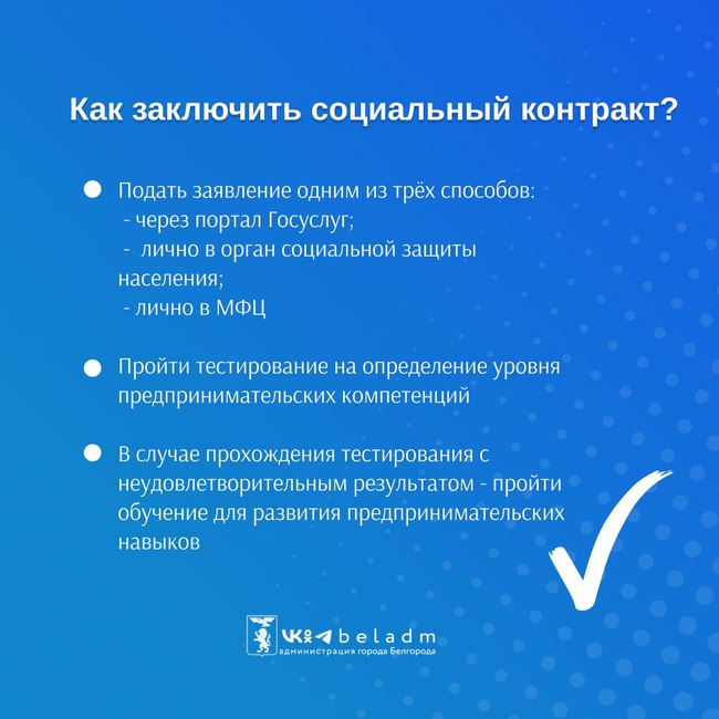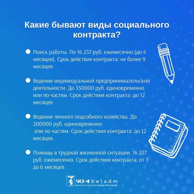 Социальный контракт — это реальная поддержка от государства! О том, какие есть виды социального контракта и кто может его получить — читайте в карточках. Подробную информацию о заключении соцконтрактов можно получить в Центре социальных выплат по телефону: 4-43-08, а также у специалистов соцзащиты по месту жительства — они помогут разобраться и оформить документы.