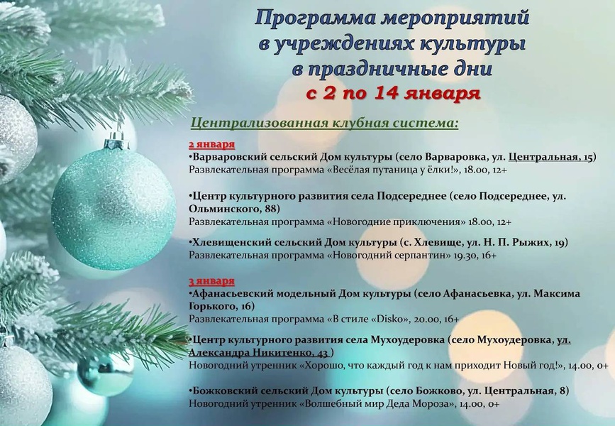 Приглашаем вас насладиться волшебством зимних праздников вместе с учреждениями культуры нашего города!