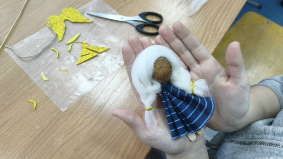 Благодаря Федеральной программе «Пушкинская карта» ученики 9 «Б» класса МБОУ «ООШ №5» смогли посетить уникальное пространство – Алексеевский Дом ремёсел, где под руководством талантливого мастера и руководителя студии Прокопенко Алины ребята создали своими руками чудесный сувенир – «Ангелочка».