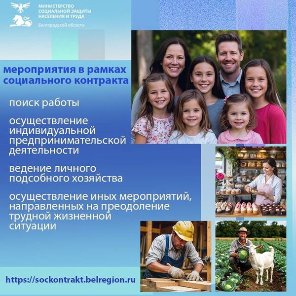 Эта программа помогает малоимущим семьям и одиноким гражданам, чей доход ниже прожиточного минимума, получить поддержку для улучшения своего материального положения. Соцконтракт, в том числе, открывает особые возможности для творческих предпринимателей – можно получить поддержку на открытие мастерской народных промыслов, театральной студии, культурного центра или другого дела в сфере культуры. Стать участником программы можно по четырём направлениям. Подробнее о размерах выплат и порядке участия здесь – sockontrakt.belregion.ru Подать заявление можно через Госулуги по ссылке: clck.ru/37cPMWе